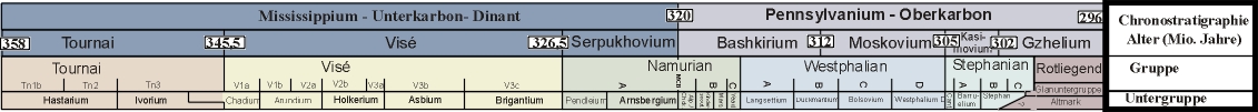 An der Grenze zum Namur (oberes Karbon) reißt die stratigrafische Überlieferung ab. Es wird nicht mehr sedimentiert. Das variskische Meer ist in unserem Raum verschwunden; es wurde regelrecht zugeschüttet (ca