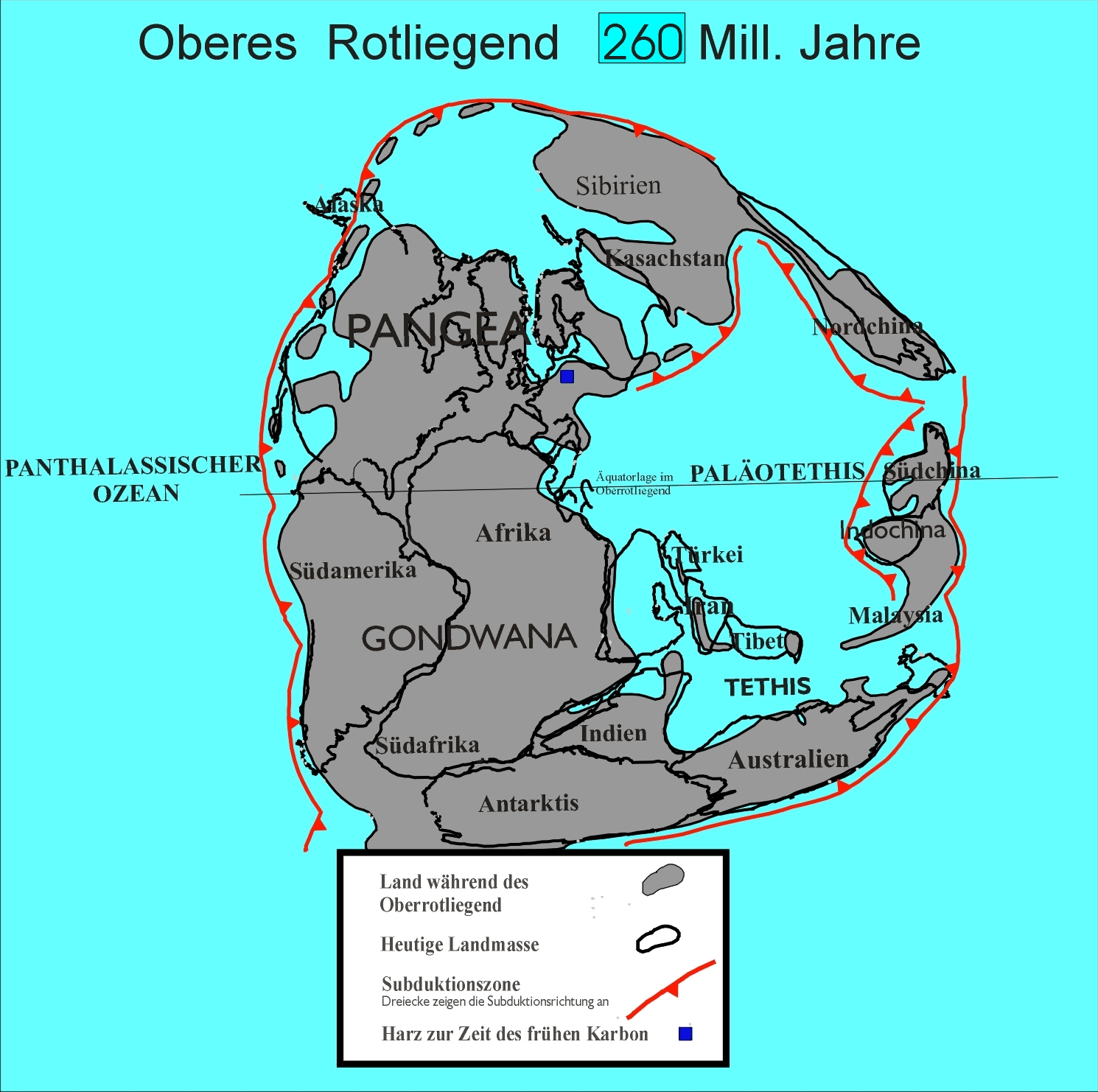 Die Variskische Faltung ist nun weitgehend abgeschlossen. Das Germanische Becken bildet sich aus, in welches hinein in den nächsten Zeitabschnitten die Sedimentation stattfinden wird. Die Paläozoisches Fauna