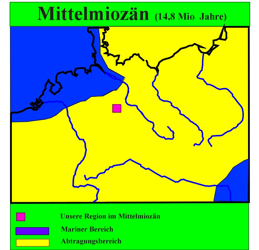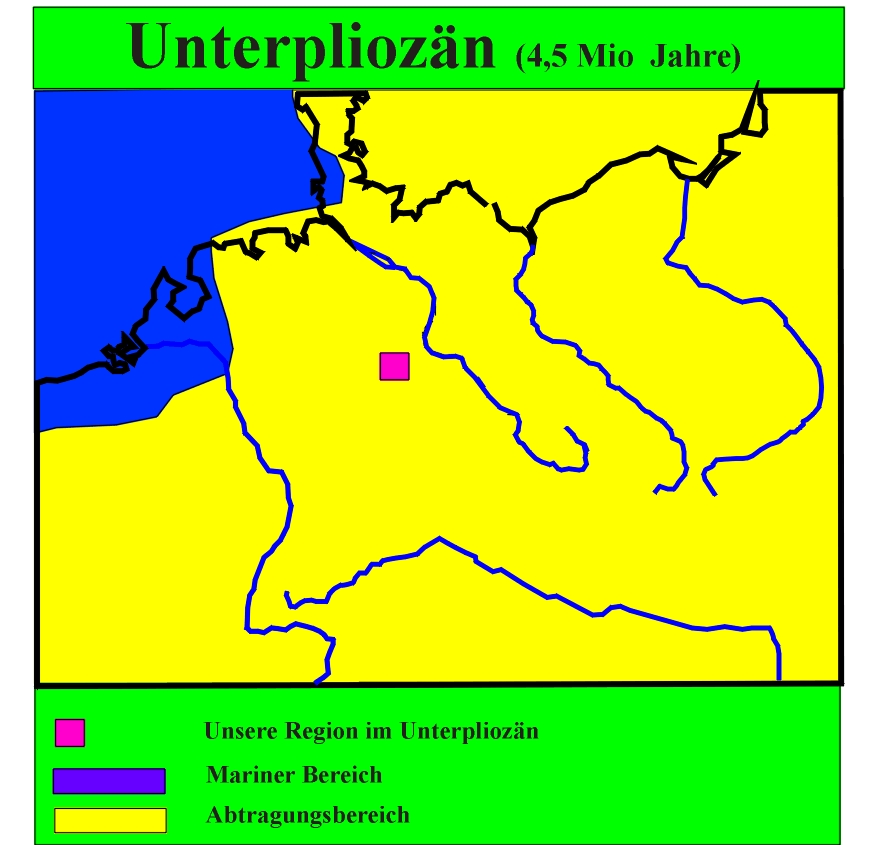 Im Oberoligozän hat eine Regression des Meeres Nord- und Alpenmeer wieder getrennt.. Mit dem Obermiozän beschleunigte sich dieser Rückzug noch. Im Pliozän wurde Sylt Festland und auch am Niederrhein wurden letzte