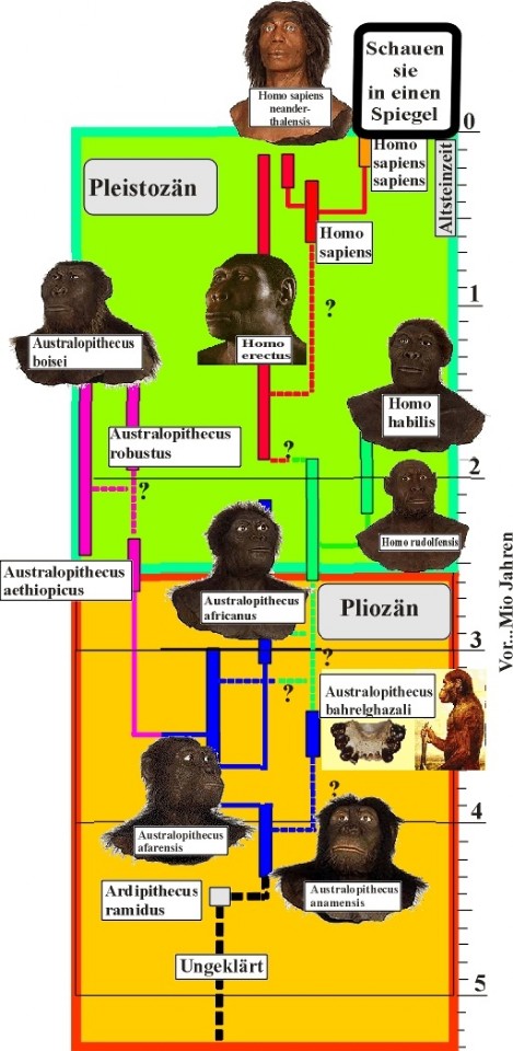 Im Pliozän waren es im wesentlichen die Australopithecen, die in der Linie zur Menschwerdung eine Rolle spielten.